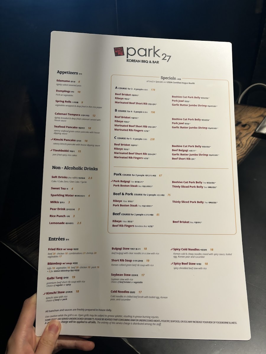 Introducing the Menu at Park27 Korean BBQ and Bar - Centennial Park